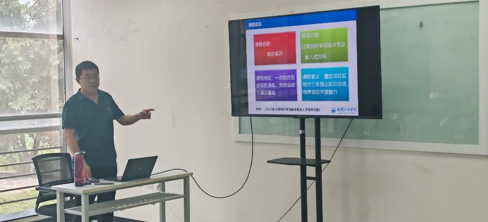 活动中,杨跃臣老师以“综合实训(嵌入式方向)”课程为例展开说课。他围绕课程在专业人才培养体系中的定位,详细阐述教学目标 —— 旨在通过实训让学生掌握嵌入式系统开发的核心技术与工程实践能力。在教学内容设计上,杨老师结合行业岗位需求,引入智能控制等真实项目案例,采用 “任务驱动 + 分组协作” 教学模式,引导学生从需求分析到系统调试完整参与项目开发。同时,他还介绍了课程考核方式,通过过程性评价(含项目进度、团队协作)与终结性评价(项目成果答辩)结合,全面检验学生实训成效,充分体现 “以评促学” 理念。
